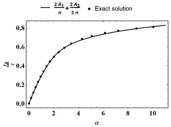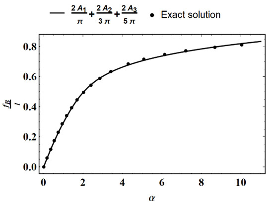 By substituting Equation (13) into Equation (15), the calculated deflection of the end of the beam is compared with the exact solution in Figure 2. Clearly, the first-order approximation with only one term can obtain the coefficients of a polynomial in the parameter of the beam and the accuracy is surprisingly good as compared with other approximate techniques which may require extensive numerical calculations. The procedure above is not widely used before for the nonlinear solution of coefficients, but the advantage of such an approach is remarkable and straightforward. It is recommendable to use this procedure for similar nonlinear differential equations for simple and accurate solutions. Remarkably, the coefficients as a function of parameters are an approach that can significantly optimize the solution and procedure. Such results from the solutions of nonlinear algebraic equations are novel, and the computational cost is much lower than other techniques.