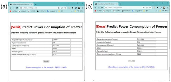 Web-based freezer electrical energy prediction service ((a) Sckit−learn and (b) Keras).