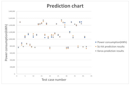 The electrical energy prediction results for the freezer setting temperature of −20 °C using a deep learning inference model are shown in Table 2. Using the results of 12,284 virtual tests obtained through all the proposed combinations, the maximum and minimum values of electrical energy and each set item value were summarized, as shown in Table 3.