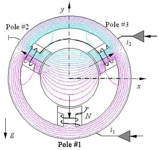 where N is the number of coil turns on each magnetic pole and are coil currents. Then, the dynamic model of the system is given by