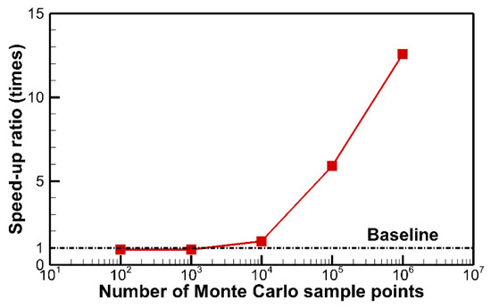 Speedup ratio of total cost to different numbers of Monte Carlo sample points.