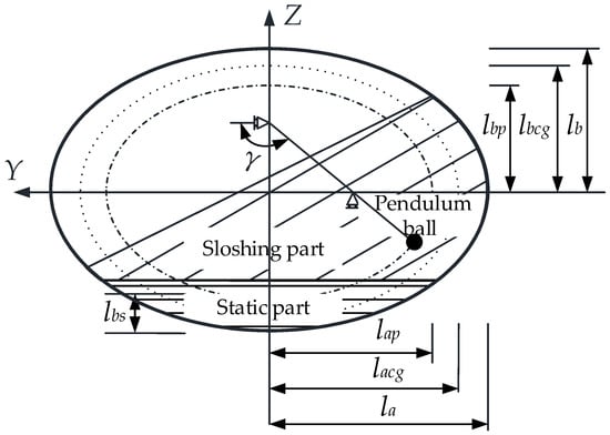 For the TP model, the liquid in the tank is divided into the sloshing part and the static part. The movement of the sloshing part is equivalent to the swing of the pendulum ball. The motion track is circular or elliptical and is similar to the tank section profile, which meets the following requirements: