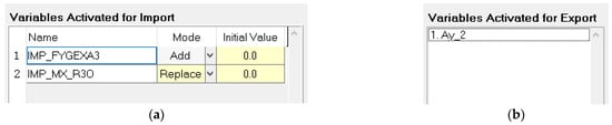 The TruckSim input/output setting module is shown in Figure 4, in which the input setting module’s Import Channel is the force and torque generated by liquid shaking, and the output setting module’s Output Channel is the lateral acceleration of the liquid tank semi-trailer.