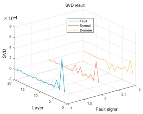 Wavelet decomposition does not directly yield frequency data. Thus, after collecting the decomposition data of all components of the frequency domain, The Hankel matrix was constructed and subjected to SVD, which yielded normal and arc currents with 30 single values (Figure 9).