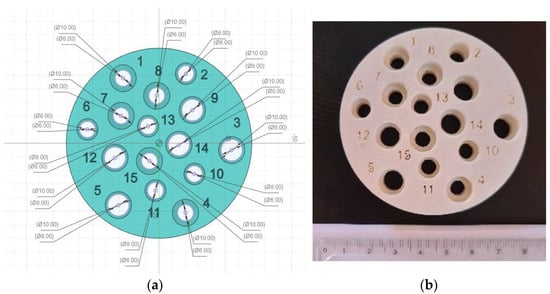 The test part for experiment 1 included fifteen straight counterbore holes with diameters of 6 mm, 8 mm, and 10 mm (ten of each) in different combinations (Figure 2).
