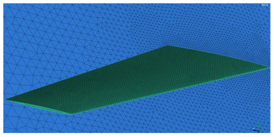 The aerodynamic model of AGARD445.6 was established in ICEM. The flow field mesh and the wing surface grid is shown in Figure 5. The size of the flow field calculation domain is 14 × 10 × 6 m, and there are six surfaces forming the outer boundary of the flow field. The boundary condition of the side face connected with the wing is set as the wall surface, and the remaining five surfaces are set as the far field.