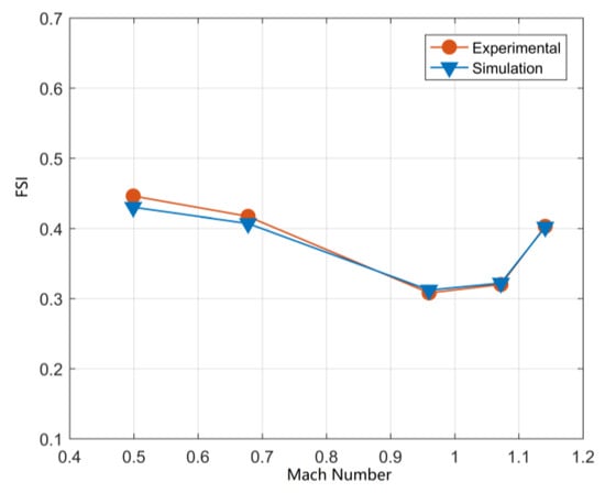 The comparison between the flutter boundary predicted by the CFD/CSD program developed in this paper and the experimental results at each Mach number is shown in Figure 6. It can be seen that the difference between the simulation results and the experimental results is small, which proves the validity of the CFD/CSD calculation in this paper. Figure 7 shows two states of whether the wing structure reaches the flutter boundary or not when the Mach number is 0.687. Figure 7a indicates that the wing structure does not reach the flutter boundary, and 13(b) indicates that the wing structure reaches the flutter boundary.