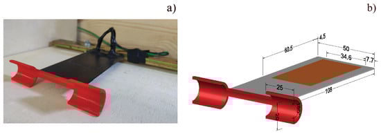 The performance of the a wide class of C-shaped VIs has been experimentally tested in a free surface flume by means of experimental FEHs [27,28,40] like the one shown in Figure 1, where both a picture and a sketch of the FEH employed in this work, along with its dimensions in mm, are provided.