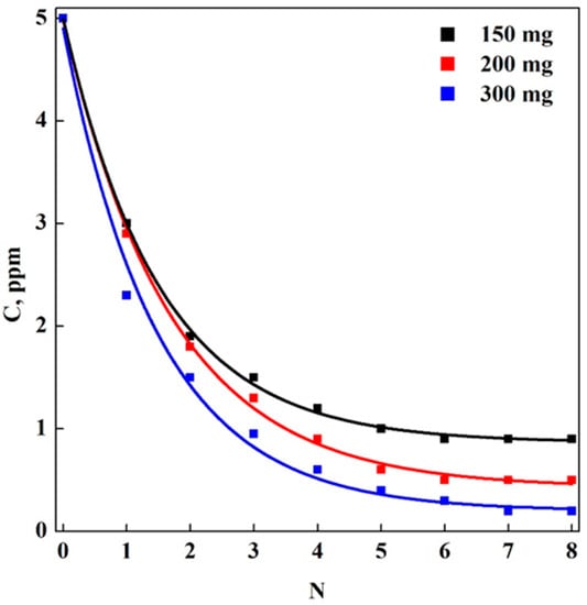 Cryogels were also used to perform multi-step filtration tests and concentration values, as a function of the number of steps, N, are reported in Figure 6.
