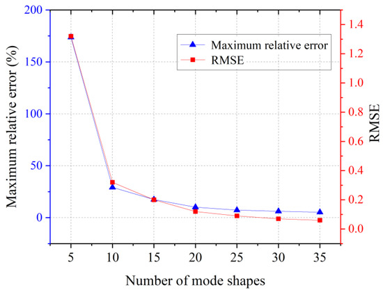 is used to reduce the stiffness matrix, mass matrix, and damping matrix of the test sample configuration . Then, the Root Mean Square Error (RMSE) of the dynamic responses calculated based on the FOM () and the ROM () are obtained as error evaluation metrics for ROM and the truncation threshold of sampling.