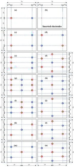 - Alshawabkeh, A.N.; Gale, R.; Ozsu-Acar, E.; Bricka, R.M. Optimization of 2-D electrode configuration for electrokinetic remediation. J. Soil Contam. 1999, 8, 617–635. [Google Scholar] [CrossRef]