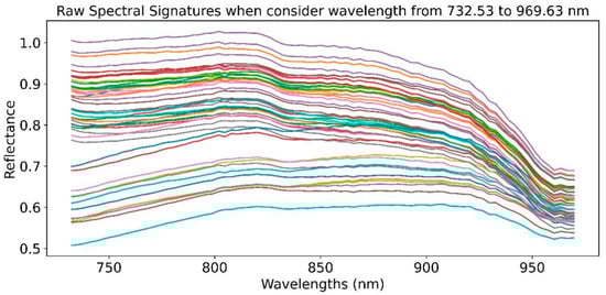 Raw spectral signatures when considering wavelength from 700 nm to 1000 nm.