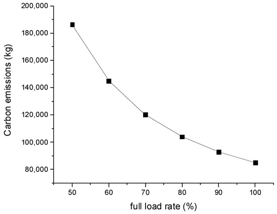 Carbon emissions from the transportation of prefabricated components under the influence of different full-load rates.