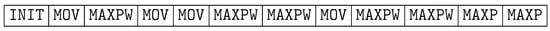 In this work, we define a hyper-heuristic (HH) as a sequence of heuristics that are successively applied to the problem. However, only specific sequences render valid solutions. In this regard, the HH is given by a combination of low-level operators of any length, where repetitions are allowed. This promotes that the number of city selection occurrences equals the number of cities within the problem instance. Moreover, the first two movement operators are always side-by-side, and the sequence ends with an implicit movement operation. This is because the starting city does not contain items to pack and because the tour must be a closed loop around the cities. Hence, we aliased this first occurrence of the movement heuristic as INIT. Figure 3 provides an example of a feasible HH for a problem instance with five cities. Note that item selection heuristics can appear as many times as desired, although they do not require selecting an item at all times. This is because the number of items per city changes from one instance to another.