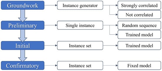 We followed a four-stage methodology in this work, as Figure 4 shows. We begin by testing the proposed instance generator, using it to create some sets of instances. Then, we use such sets to evaluate our proposed model and its generalization capabilities. Please consider that we conducted all experiments using the same random number generator for repeatability purposes (the Mersenne Twister algorithm with a seed of 0). Besides, all hyper-heuristics have access to all the heuristics from Section 3.2.