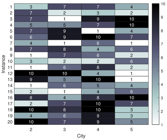 Remember that a valid HH may have any arbitrary length as long as it complies with the minimum number of city selection operations. This is possible because our implementation ignores the request of an item selection heuristic when no valid objects are left in the current city. Thus, adding more item selection operators does not improve performance, although it increases the computational burden of the model. Hence, one may arrive at excessively long sequences.