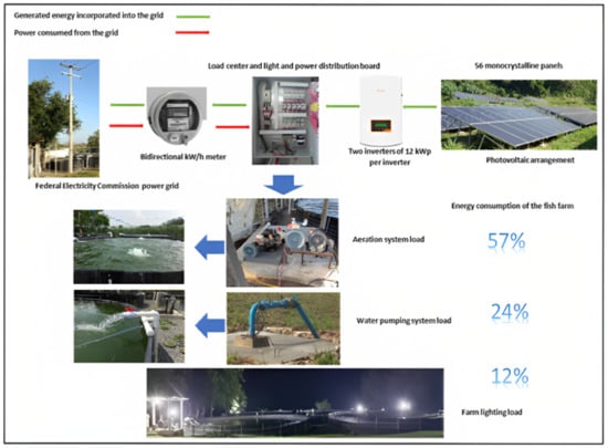 In Mexico, according to the General Law on Sustainable Fisheries and Aquaculture, rural aquaculture is considered to be those small-scale aquatic organism production systems carried out by families or small rural groups, in extensive or semi-intensive crops, for self-consumption or partial sale of harvest surpluses [24]. Other classifications in aquaculture are Aquaculture of Limited Resources (ARELs) and Micro and Small Enterprise (AMyPEs), representing about 59,088 ARELs and 12,737 AMyPEs in Latin America and the Caribbean, where a technological change in the sustainable use of water and energy is important [25]. The above data suggest that a current census, not yet available for all aquaculture countries in the region, would yield a much higher figure [26,27]. These data suggest the importance of aquaculture and the need to initiate the development of innovative solutions for sustainable aquaculture supported by photovoltaic energy.