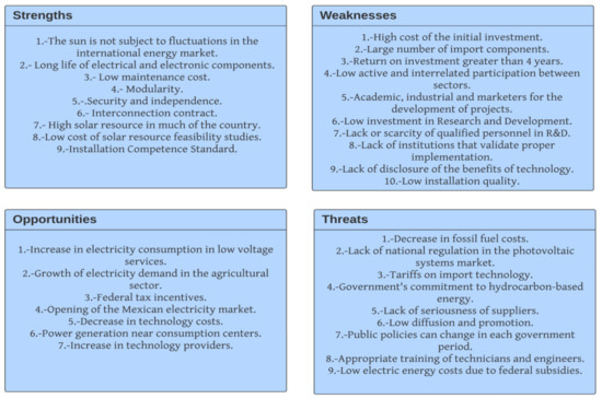 The solar resource potential in Mexico stands out because the annual amount of solar radiation received is higher than that of other countries. Mexico is located in the so-called global maximum irradiation belt, between 30 north and 30 south latitudes, which makes the amount of solar radiation high throughout the national territory, with an average of 5.5 kW/m2/day [40,41]. In the structure of primary energy production, the Ministry of Energy (SENER) reported that only 2.8% of the national energy produced is obtained from sources such as geothermal, solar and wind. In this sense, the renewable sources that increased their participation in the gross domestic energy supply in 2018 were solar (58.20%) and wind (23.2%). Thus, the net generation of electricity with self-sufficient solar energy in 2018 was 327.77 GW/hour [40].
