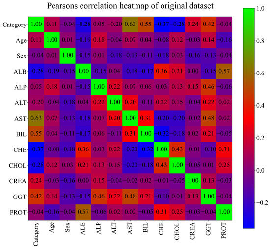It can be seen from Figure 2 that the highest correlation is achieved between Category (target variable) and the input variables AST (0.63) and BIL (0.55). However, in this investigation, all input variables will be used in GPSC to develop symbolic expressions.