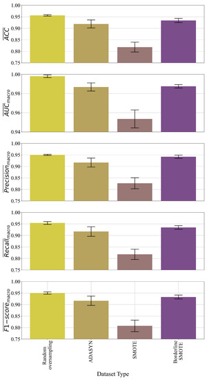 The oversampling methods are used to balance the number of samples of dataset classes. In the case of the imbalanced dataset with two classes, the class with a lower number of samples is called the minority class, while the other is called the majority class. So with the application of oversampling techniques, the idea is to oversample the number of minority class samples to match the number of samples of the majority class. In the case of multiple classes, the idea is to oversample the number of samples of minority classes to match the sample number of the majority class. As already stated in this research Random Oversampling, SMOTE, ADASYN, and Borderline SMOTE methods have been used to balance the original dataset.