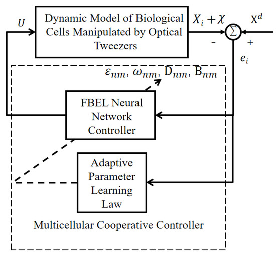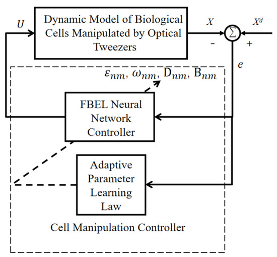The trajectory-tracking control of the cell manipulation is realized by the FBEL neural network controller. Figure 4 shows the structure diagram of the closed-loop adaptive controller based on the FBEL neural network.
