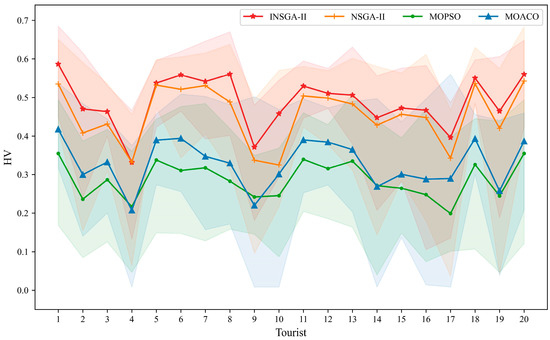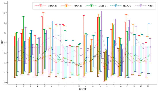 Crowd dynamics can enhance the tourism experience in TTDP in numerous ways, such as preventing congestion and enhancing destination awareness. Nowadays, academic interest is gradually growing in crowd-aware TTDP. Various studies have demonstrated that large crowds within an attraction indicate the attraction’s popularity and create a more enjoyable entertainment atmosphere [42,43,44]. However, “over-tourism” caused by excessive crowds poses significant safety risks, especially in the post-COVID-19 phase, when visitors become more sensitive to crowding and avoid crowded places voluntarily in the short term [45]. Some researchers have considered attraction congestion as an objective of the TTDP. Wang et al. (2016) [34] constructed a multi-objective time-varying function that incorporated POI heat, user interest, and crowding data, and solved the problem by employing a variant of the ant colony optimization algorithm to provide users with a travel itinerary that avoids the most crowded time of the POI. In addition to the congestion, the interactive network of attractions constructed by tourists’ mobility contains a wealth of information that can be used for destination comprehension. For instance, in the destination network, a high degree of centrality indicates higher power and status of the nodes [40,46]. Lastly, the composition of the population structure of attractions can be used to describe the audience type of the attraction quantitatively. It can be used for substitution between attractions, which is inspired by the concept of homophily [39,47]. However, existing studies have not explored crowds, and there is no practical method to adjust tourist routes to address sudden crowd surges.