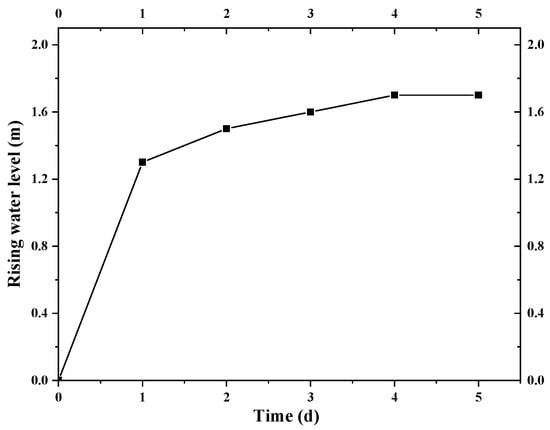 The recharge wells in the inner circle were first recharged at a recharge rate of 1000 m3/d. The water level of the second confined aquifer did not change after 4 days of recharging (Figure 7), and a stable seepage field was formed by the recharge wells.