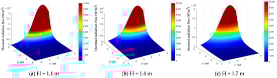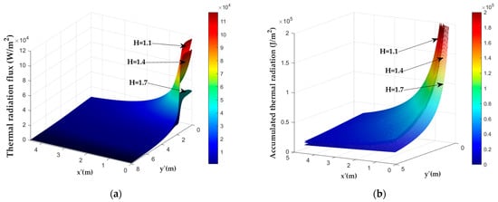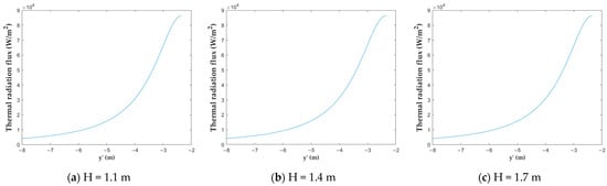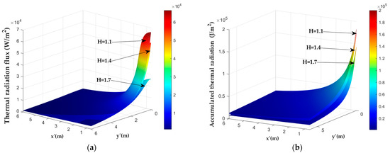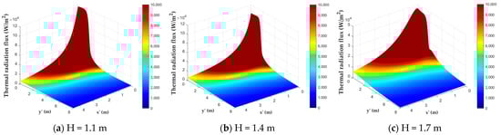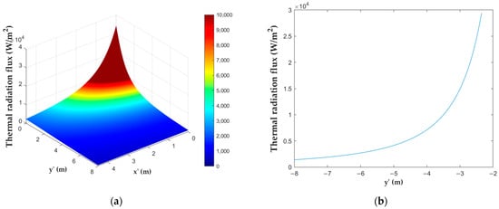 According to Equations (3) and (4), the calculation formula for the incident thermal radiation flux q can be obtained as follows [17,34]: