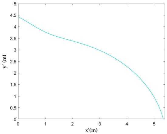According to the analysis in Section 3.4, the flame of the EV fire was affected by the airflow and the geometry of the SFM tilted in the air-flow direction. Considering the most adverse condition, the airflows towards the pedestrian evacuation area caused the rectangular flame model to tilt in the positive direction of the x′-axis and the included angle with the z-axis was . As the tilted flame occupied the pedestrian evacuation area, the distance L0 from the initial position O′ of the pedestrian fleeing the flame surface is as follows: