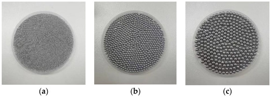 Filling materials of three kinds of particle size. (a) 1mm; (b) 2mm; (c) 3mm.