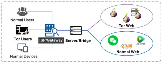 - Shahbar, K.; Zincir-Heywood, A.N. An analysis of Tor pluggable transports under adversarial conditions. In Proceedings of the 2017 IEEE Symposium Series on Computational Intelligence (SSCI), Honolulu, HI, USA, 27 November–1 December 2017; IEEE: Piscataway, NJ, USA, 2017; pp. 1–7. [Google Scholar]