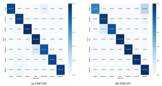 The Berlin Emotional Speech (EmoDB) [18] dataset is an emotional speech corpus created by the Institute of Communication Sciences, Technical University, Berlin, Germany. It was recorded by ten professional actors-five men and five women, in German. The EmoDB dataset contains a total of 535 records representing 7 emotions: anger, boredom, fear, happiness, sadness, disgust, and neutral. Recordings were made at a sampling rate of 48 kHz and then down-sampled to 16 kHz.