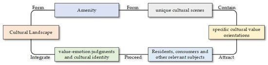 The cultural landscape reveals specific cultural connotations through various scenes, and scenes become an important carrier of cultural expression. People understand and give things cultural connotations through scenes, and make things “live”. As shown in Figure 2, various types of cultural landscape form amenities, amenity form unique cultural scenes, and cultural scenes are a composite of various amenities, representing the overall cultural style or aesthetic characteristics of a place. These specific cultural value orientations attract the corresponding cultural subjects to come to cultural practices and form value-emotion judgments and even cultural identity through their feelings.