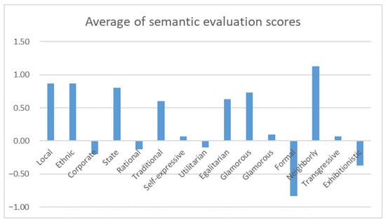 The analysis of the subjective level of perception is mainly measured by the value dimensions of scene theory, which include 15 dimensions. The use of value dimensions can make the originally abstract scene value measurable and can more scientifically describe the cultural value tendencies embedded in specific scenes. Scene value is presented through certain concrete elements, such as facilities and activities. This section uses the form of a semantic differential scale for the analysis of value dimensions.