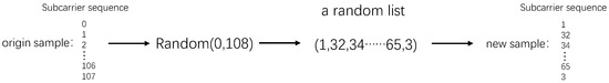Subcarrier rerank. Aiming at the characteristic that the OFDM signal contains 108 subcarriers, we propose a method by adjusting the order of subcarriers to generate extra samples. The specific method is shown in Figure 5: Randomly generate N random sequences ranging from 0 to 108, adjust the order of subcarriers of each original sample according to this sequence, and ensure that each signal generates new samples of the same subcarrier sequence. This method expands the number of samples in the training set to N+1 times than the original, so as to achieve the purpose of data augmentation.
