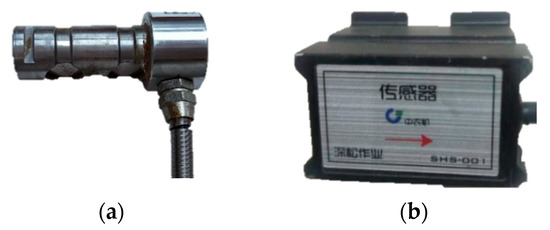In Section 2.3.2, the maximum contact force FJC is 8700.5 N. Considering the range accuracy and the safety factor of the pin, the range of the load pin is 10 kN, and the LZ-HZ11-25 load pin is from Hefei Lizhi Sensor System Co., Anhui, China. The range is 1000 kg and the integrated accuracy is 0.5%, which meets the operation requirements (Figure 7a).
