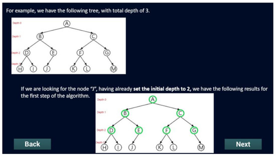 At the start of each level, the player is provided with the necessary educational material. Specifically, the player is informed in detail and with at least one example about the algorithm he/she is about to encounter, as shown in Figure 5.
