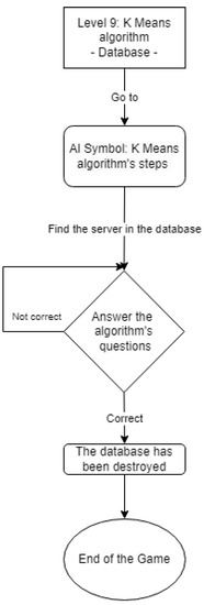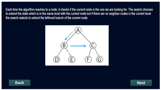 Being multimodal is another important aspect of a game, and this requires using multimedia and providing easy interaction between the player and the game with immediate feedback [17]. The player’s interaction with the game environment becomes quite easy and fun, as at each level, the player comes in contact with clear and understandable, in terms of their content, graphic elements that provide him/her with either user-friendly interaction windows or informative messages. For instance, one of the graphic elements with which a player can interact is an AI symbol (Figure 1) that transports the player to the learning theory of each algorithm (Figure 2), including detailed examples of its application (Figure 3).