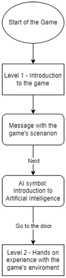 - Clear goals: At the beginning of each level, the player is presented with the mission that he/she has to complete with clear steps, depictions and photos of the spaces he/she will encounter (Figure 4). In this way, the player is fully focused on learning each algorithm and is not burdened with extra effort to understand what should follow.