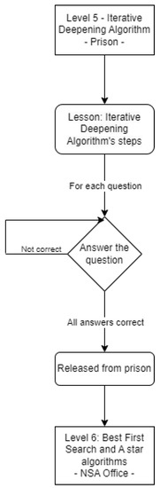 Level 5 (see Figure 16): Here, the player has been imprisoned by Paraforce, and in order to escape, he/she will need to breach the prison door. The door is digital and can be breached using the Iterative Deepening (ID) algorithm. After learning the algorithm, the player is asked to “crack” the digital lock by correctly answering questions related to the ID algorithm.