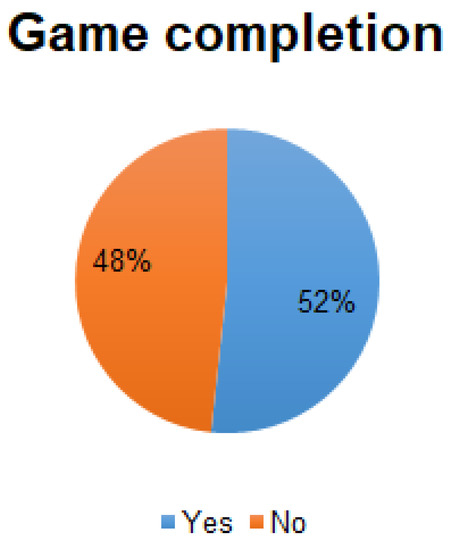 As can be seen in Figure 22, half of the participants completed all the levels of SpAI War, while the majority of them (69%) played the game for at least one hour (Figure 23: 29% played for 1 h, 35% played for two hours and 5% played for 3 h). This is considered important both in terms of the interest caused by SpAI War but also for the validity of its evaluation by the participants that devoted the necessary time in order to experience all the aspects of the game.