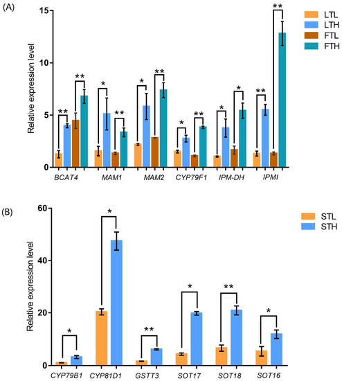3.4. Identification of DEGs Related to Glucosinolate Biosynthesis