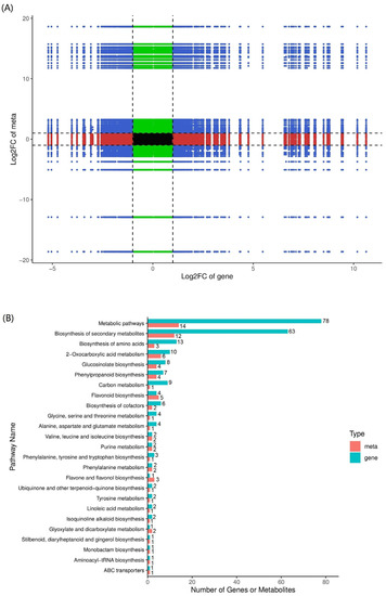 2.6. Correlation Analysis of the Transcriptome and Metabolome Data