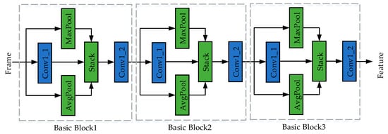Architecture of the Conv Block, which contains three sequential Basic Blocks. Each Conv contains a sequential structure of a convolution layer, a BatchNorm layer, and a LeakReLU layer.