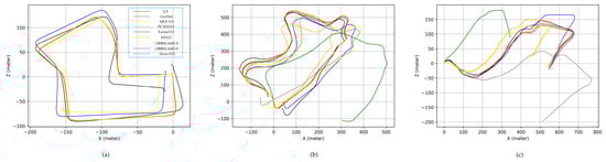 Qualitative evaluation on (a) Sequence 07, (b) Sequence 09, and (c) Sequence 10 of KITTI odometry benchmark.