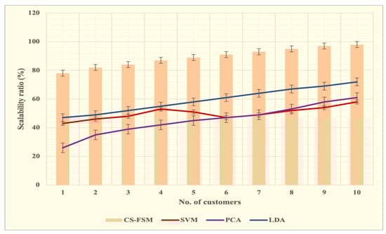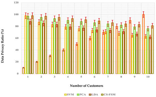 Figure 6 shows that the financial sector’s data privacy ratio is mathematically confirmed using Equation (2). The innovative CS-FSM method to financial sector cyber security enhances privacy, scalability, risk reduction, data protection, and attack avoidance. EES and KNN are two examples of AI algorithms that can provide a more comprehensive view of cyber security than traditional methods. The proposed method represents a significant improvement over the status standard of cyber security measures in the banking industry. The results in