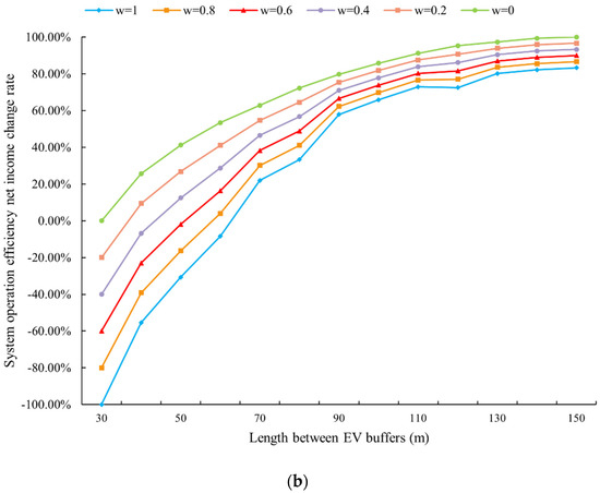 Impacts of CVs and EVs operations on the net income of the system: (a) CV flow and (b) length between EV buffers.