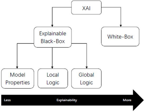 With the development of intelligent systems in application areas, such as autonomous robots and vehicles [4,5,6], health care [7,8,9], such as soft tissue sacromas segmentation [10], skin lesion segmentation [11], and coronavirus (COVID-19) classification [12], classification and detection in image processing [13,14,15], etc. Automated systems must provide users, developers, and regulators with explanations based on practical factors and social and legal reasons when making decisions or recommendations. Therefore, making the black-box model transparent and explainable is also an important research in the field of AI. The technique for making models transparent and explainable is called XAI, and XAI techniques improve the reliability of models by giving users confidence that the models make good decisions [16]. Many existing methods compute the importance of a given base model and output class [17,18,19], but they require the use of intermediate feature mappings, network weights, and other internal factors of the underlying model. The explainability of the AI model is shown in Figure 1.