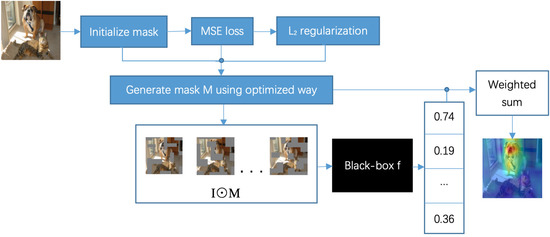 OISE is a new black-box interpretation method for better visual interpretation. By optimizing the loss function and continuously updating the mask, we can reduce the computation of the random generation mask, minimize the area of the generation mask and influence the decision score, and make the generated saliency map area more accurate. The model framework is shown in Figure 2.