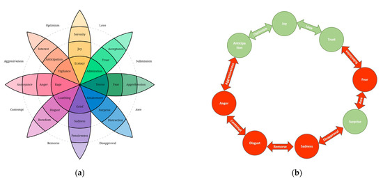 Other authors apply Plutchik’s wheel of emotions to annotate and classify sentences based on the prevailing detected emotion category. In [30], a panel of annotators evaluated which of the emotional categories of Plutchik’s wheel was the most relevant in each sentence of a training set of documents; then, bi-directional long-short-term memory and a convolutional neural network were used to classify the documents.